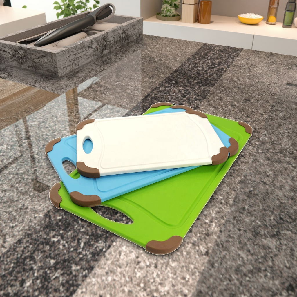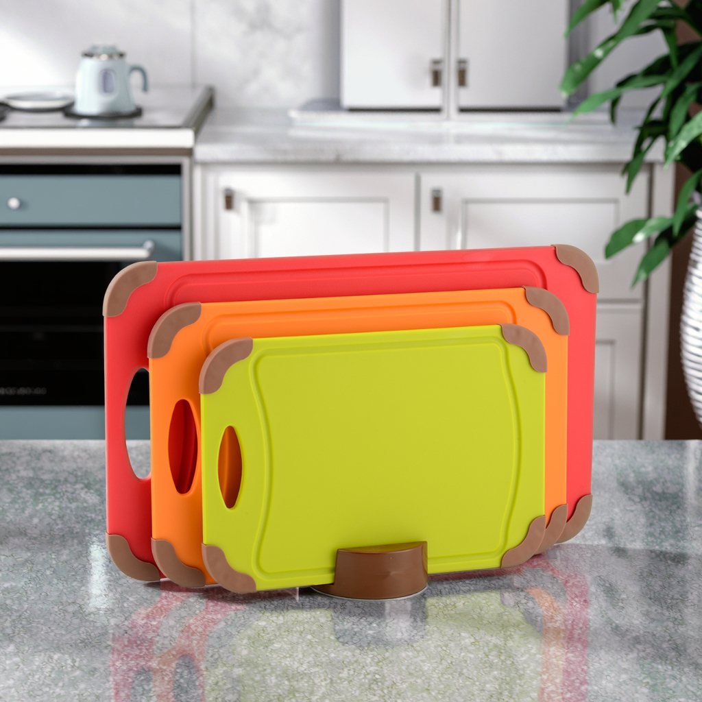 4 pcs Cutting Board setPP+TPR material , BPA freeEasy to clean & non-slipColor Box: 25.5x6.3x42.5cmCarton Size: 40x27x44cmQty/ctn: 6 sets