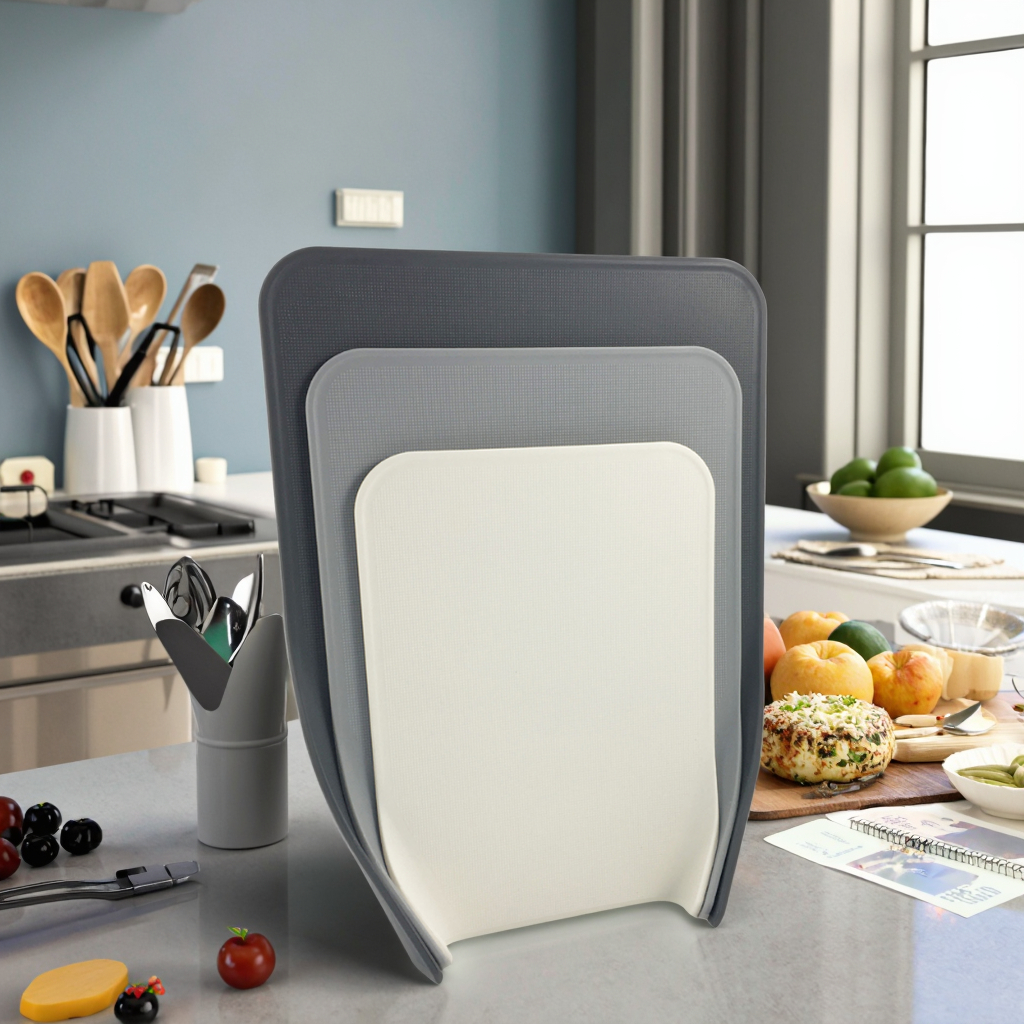 3 pcs Cutting Board setPP material , BPA freeEasy to clean & non-slipColor Box: 25.5x6x34.3cmCarton Size: 52x32x36cmQty/ctn: 10 sets