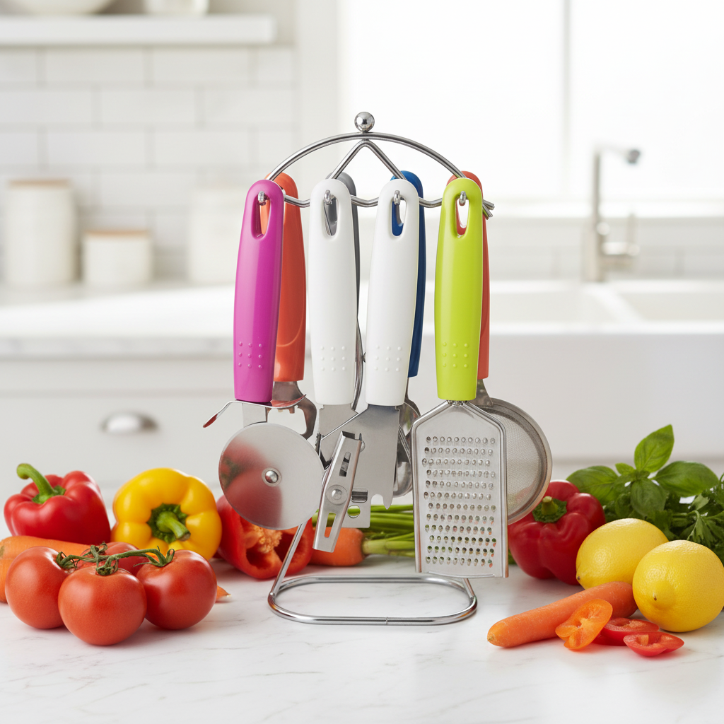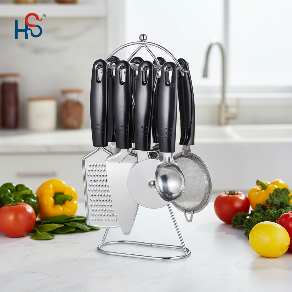 Material: ABS or PP handle & Stainless steel12 sets/ctnColor box: 16*9.5*31cmCarton Size: 50x40x32.5cm